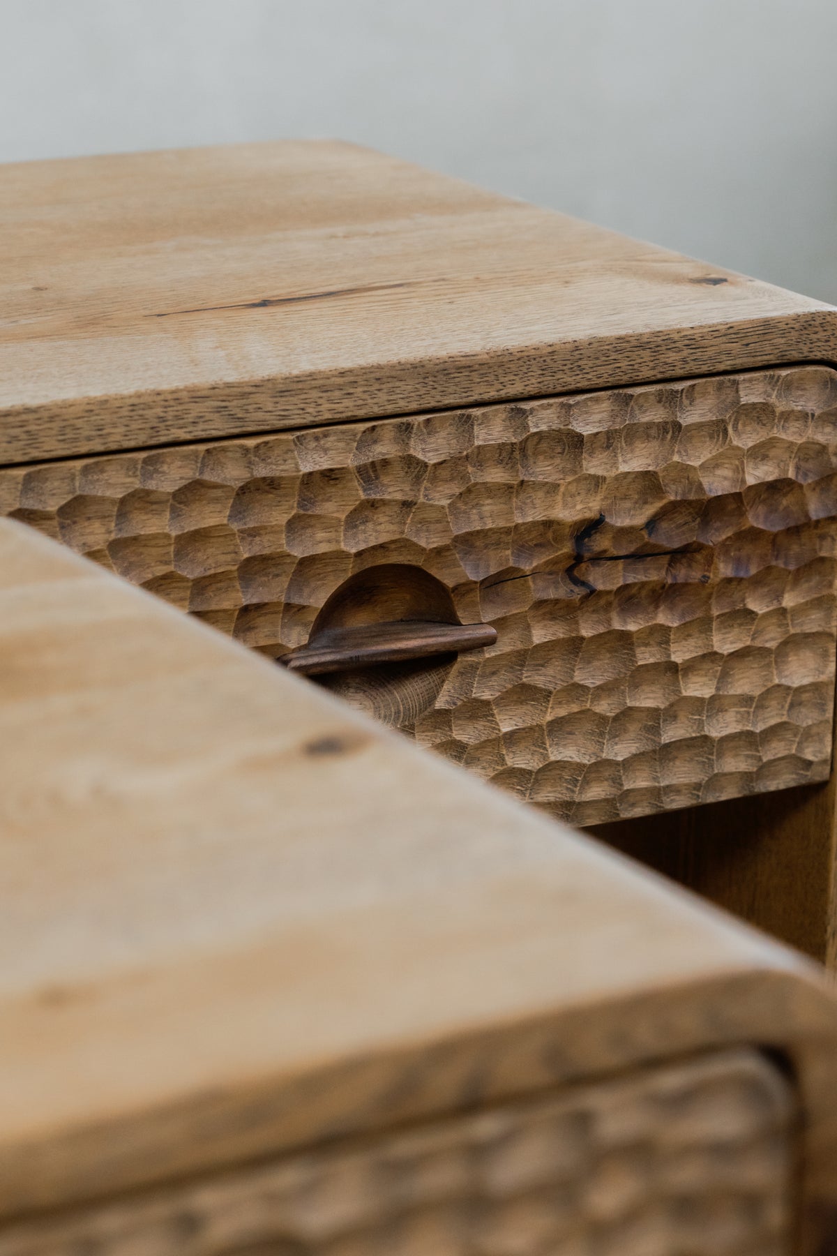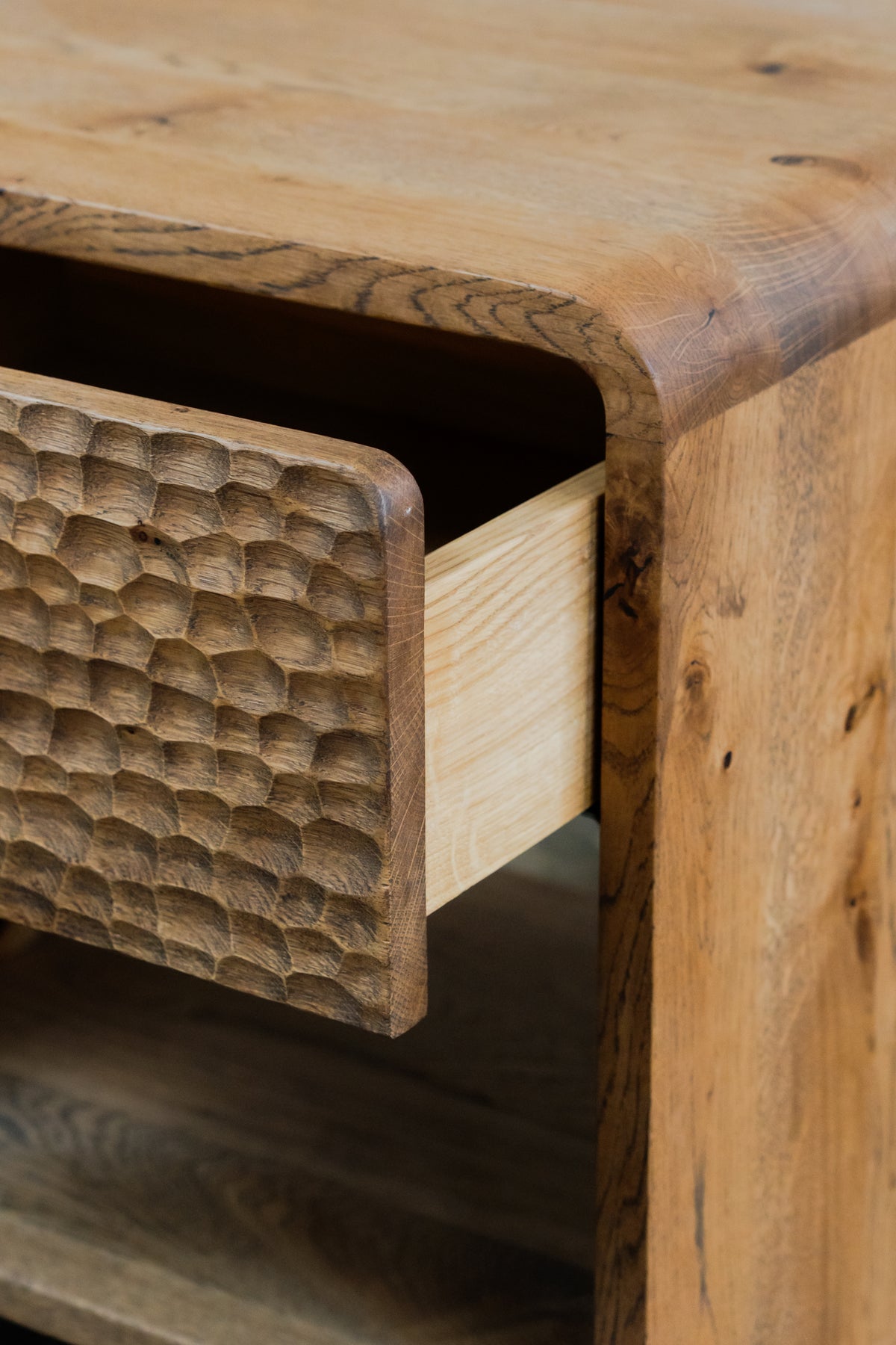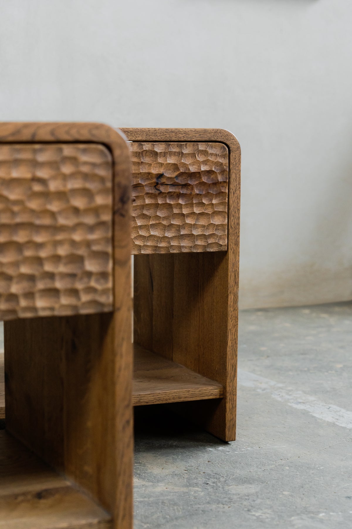 Elegantă și funcțională, noptiera Mythology aduce în dormitor echilibrul perfect între design contemporan și inspirație mitologică. Realizată din lemn masiv, cu o textură sculptată distinctivă, piesa include un sertar cu mâner integrat și un raft inferior ideal pentru depozitare.